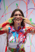 היה לי חשוב לשלב כמה שיותר צבעים כדי שיהיה ״בלאגן״ ולכן לקחתי גם צבעי ניאון וגם רגילים.